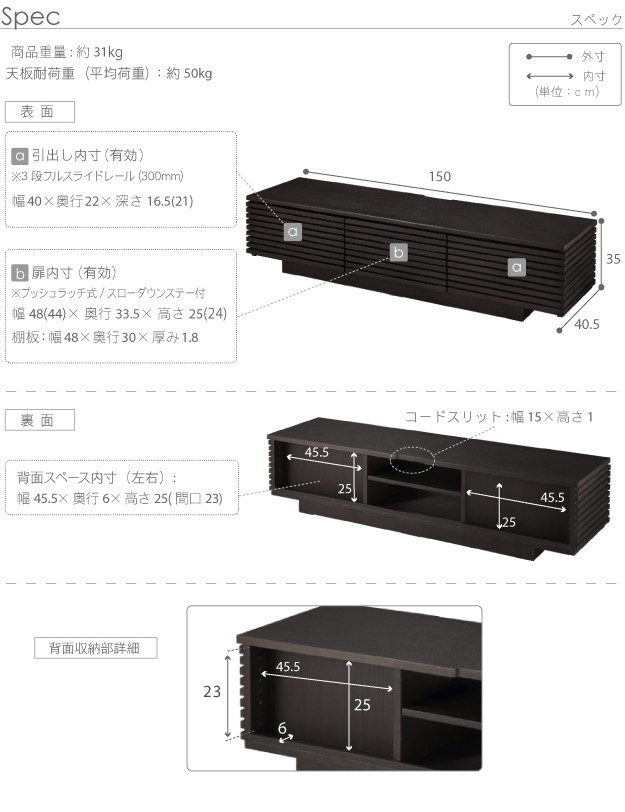 サイズ:幅150x奥行40.5x高さ35cm・約31kg