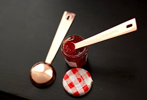 - THE QUALITY YOU’VE BEEN WAITING FOR – Still using flimsy aluminium, or dull plastic measuring spoons? You deserve no less than the quality of these. The best solid stainless steel, plated with the finest copper available! These are as sturdy and long lasting as they come! Not only do they look executively expensive, they feel it, weighing almost half a pound! The brilliant finish is so mesmerizingly beautiful, your new spoons wouldn’t look out of place in a billionaire’s kitchen!