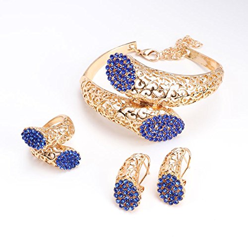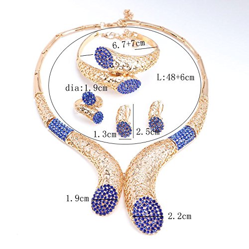-. Feature : Gold/Plated Crystal Necklace Bangle Earrings Ring Jewelry Set Costume Wedding / Suitable for everyday,wedding,party,anniversary,birthday,Christmas wear. / Including 1 necklace + 1 bangle+1 ring + a pair of earrings / Size:look at picture / It usually takes 6 to 15 business days for delivery.