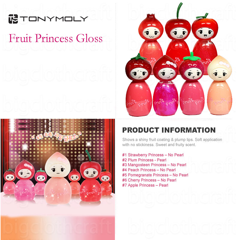 7pcs Tonymoly Tony Moly 7-Fruit Princess Lip Gloss 7g + 2Pcs #1 #2 Tint SET