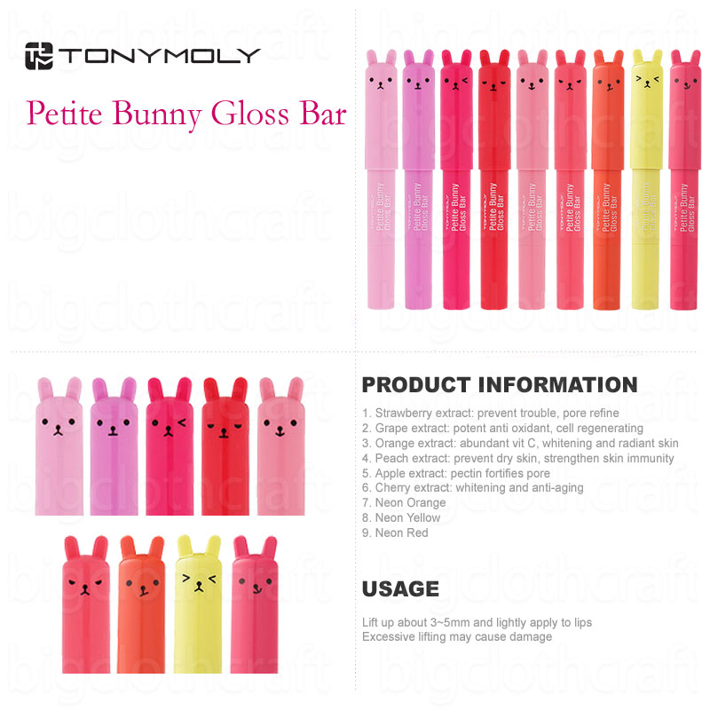 9Pcs SET Tonymoly Tony Moly Petite Bunny Lip Gloss Lipstick 2g(From #1~#9)