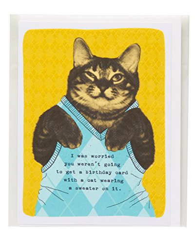 Inside Message: So here. It’s not every day you see an adorable kitty wearing an argyle sweater vest! For all those cat lovers in your circle, this fun birthday card is sure to make their special day pawsitively purrfect! Boutique-sized card design features soft yellow flocking on the front and a cool, blue argyle print inside. It’s the perfect birthday card for anyone with a quirky sense of humor! - It?s not every day you see an adorable kitty wearing a sweater vest, right? So for?all those cat lovers in your circle, this fun greeting card is sure to make their special day pawsitively purrfect!