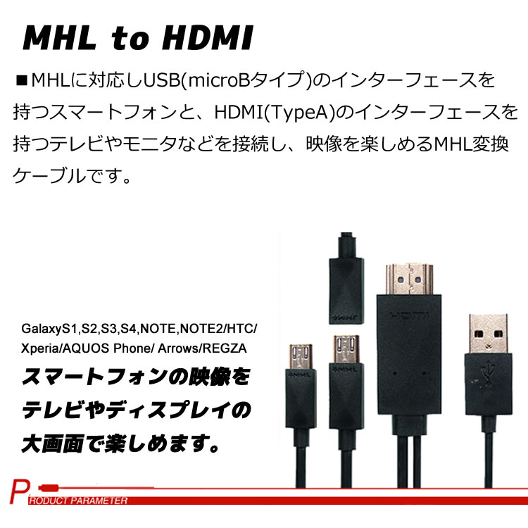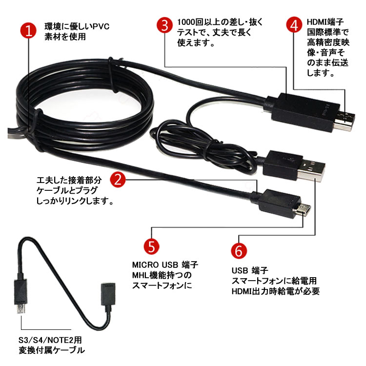 1、MHLをHDMI出力の際、USBにて同時電源接続が必要です。