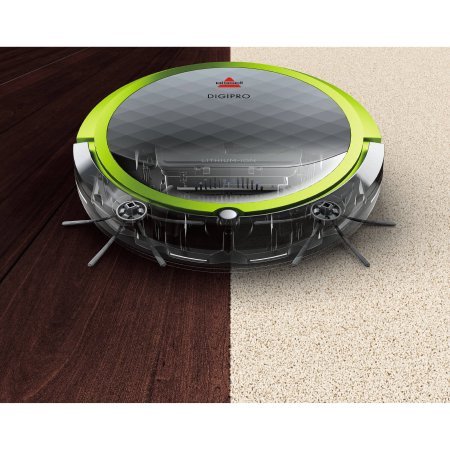 BISSELL DigiPro Robot VacuumThe DigiPro Robotic Vacuum 2142 powerful suction, unique brush roll, edge-cleaning brushes pick up dust, dirt, and hair so you dont have to. The DigiPro Robotic Vacuum gives you automatic, effective cleaning whenever you want, all over your home. Its powerful suction gathers debris, dust, and hair so you don?t have to. The wireless vacuum?s navigation system provides excellent coverage along edges, corners, even under furniture and other hard-to-reach pleases. The robot automatically returns to the self-charging docking station when the Lithium Ion battery is low.