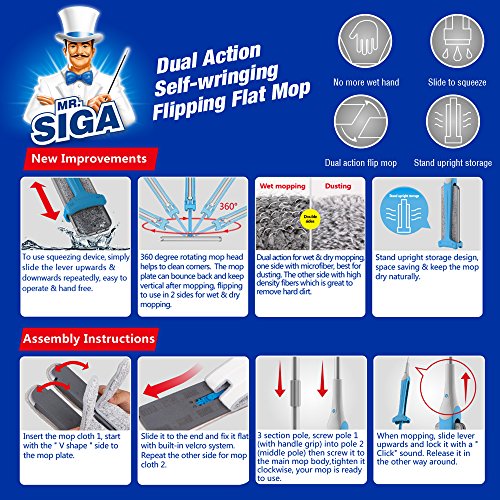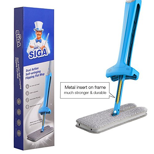 MR. SIGA Dual Action Self-wringing Flipping Flat Mop - Wet & Dry Mopping in 2 side, Size 12.5’’X 4.3’’ (32 x 11cm)