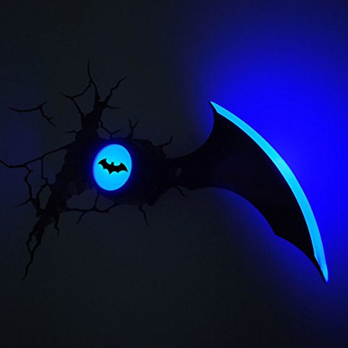 -. Brand : Batman -. Color : Black -. EAN : 9812058333624 -. Feature : Official DC Comics merchandise, Cool 3D wall light / Comes with awesome crack sticker to make it look like the Batarang has been thrown at your wall / Cordless and battery operated making it safe for children's bedrooms / Uses energy efficient LED bulbs which will never require changing, Includes all components for an easy installation / Size approx: 30cm (W) x 18cm (H) x 5cm (D), Requires 3 x AAA batteries (not included) -. Label : Branded Distribution Limited -. Manufacturer : Branded Distribution Limited -. MPN : 80002 -. PackageQuantity : 1 -. PartNumber : 80002 -. ProductGroup : Home -. ProductTypeName : HOME_BED_AND_BATH -. Publisher : Branded Distribution Limited -. Studio : Branded Distribution Limited -. Title : Batman Batarang 3D LED Wall Light