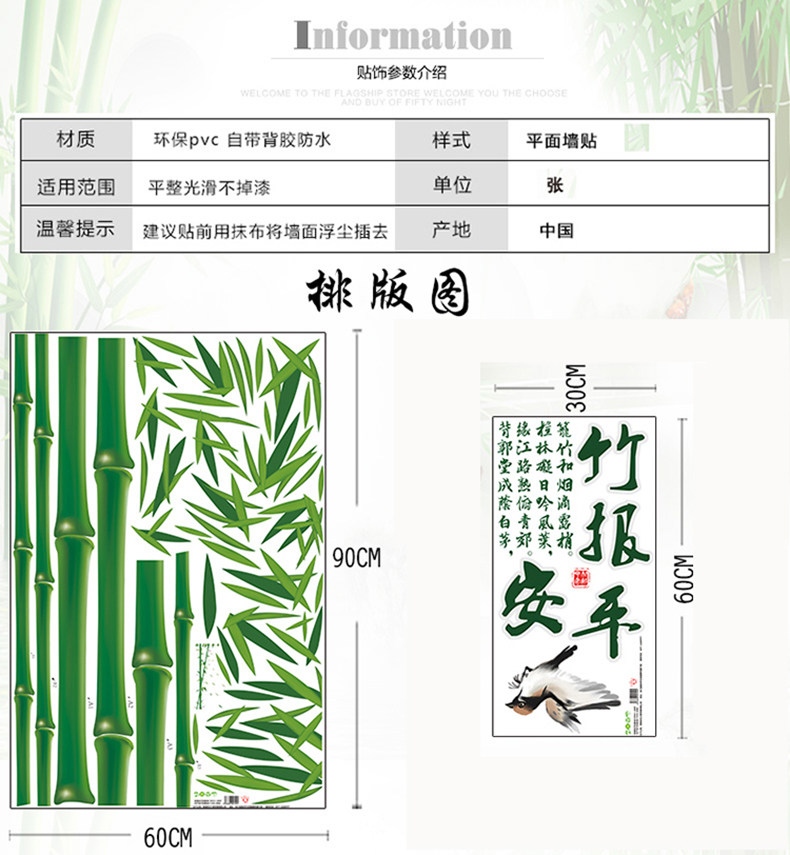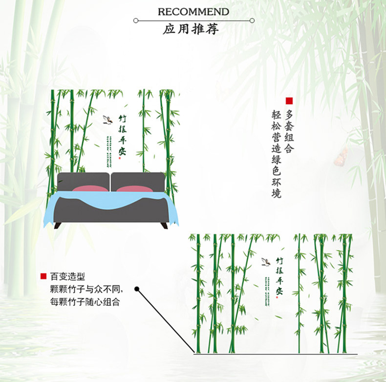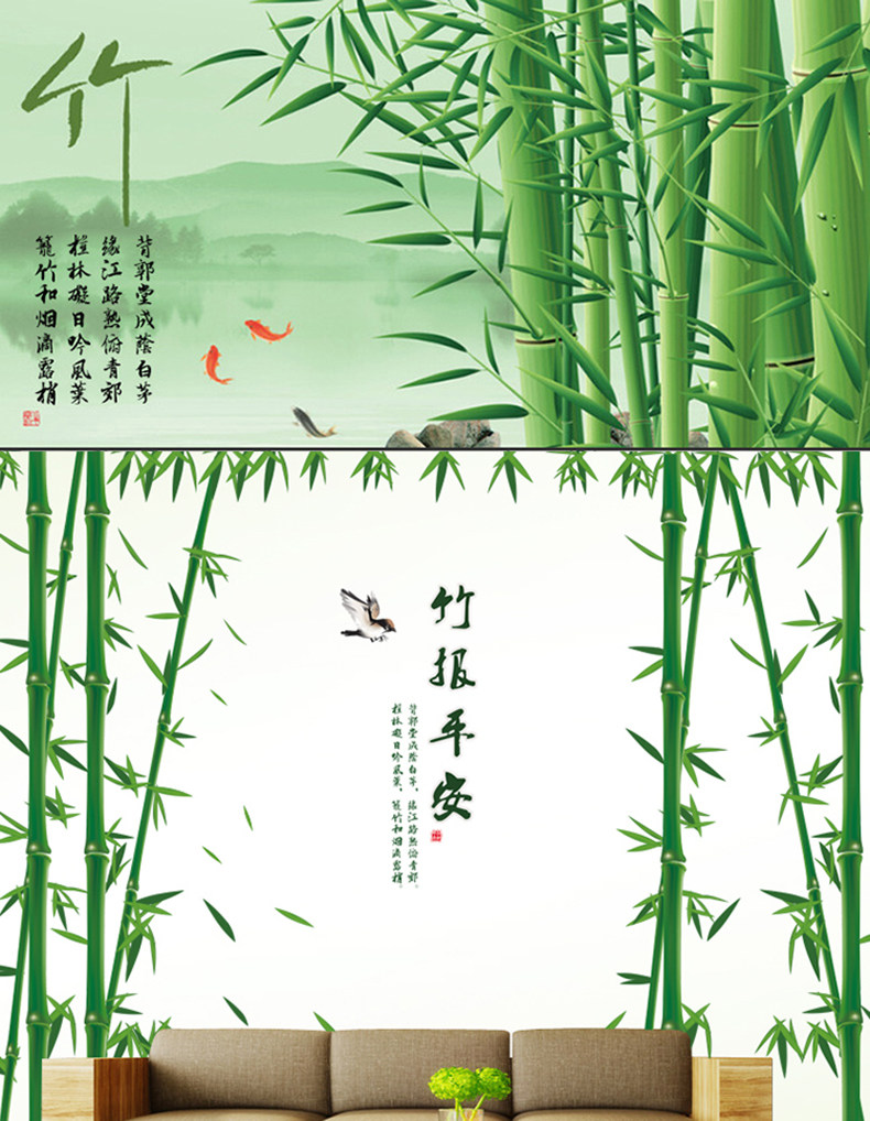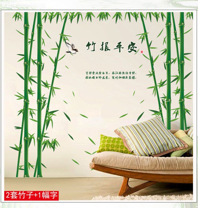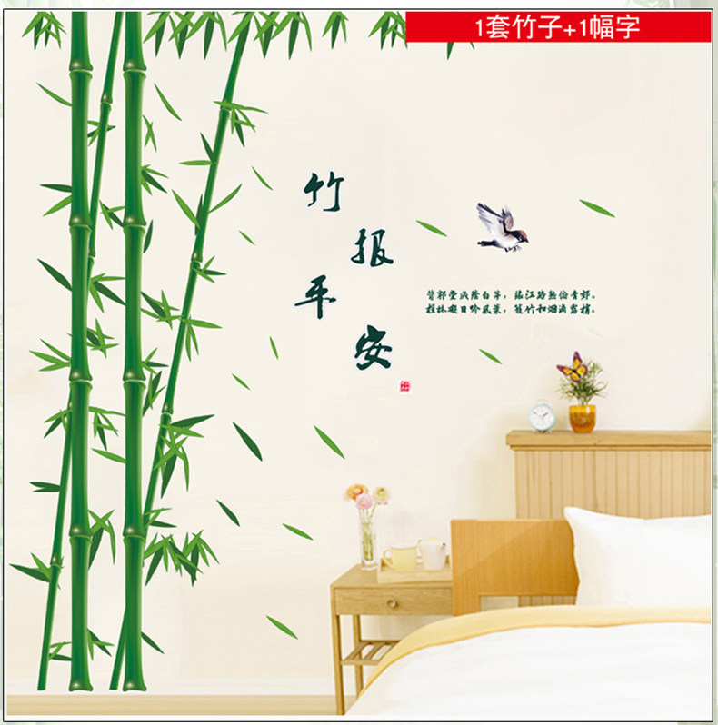 大型中国风竹子墙贴纸 墙上背景墙卧室书房客厅公司墙壁自粘贴画