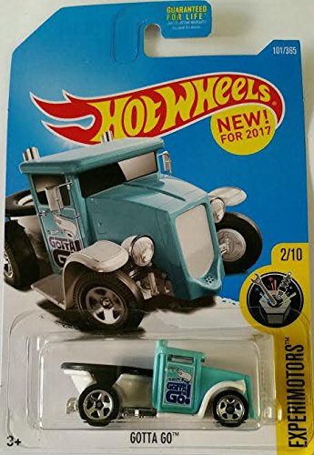 -. Binding : Toy -. Brand : Hot Wheels -. Feature : 1:64 scaled die-cast car. / Turquoise with toilet attached to the back. The lid of the toilet goes up and down. / 2/10 in the 2017 Experimotors series. / 101/365 in the 2017 Hot Wheels line. / New for 2017. -. IsAdultProduct : 0 -. Label : Mattel -. Manufacturer : Mattel -. PackageQuantity : 1 -. ProductGroup : Toy -. ProductTypeName : TOYS_AND_GAMES -. Publisher : Mattel -. Studio : Mattel -. Title : Hot Wheels 2017 Experimotors Gotta Go (Toilet Car) 101/365, Turquoise