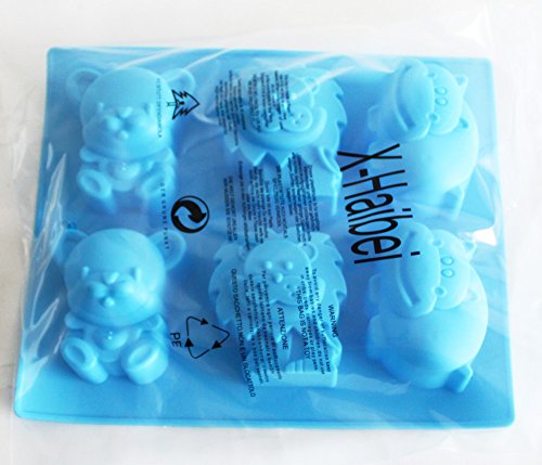 X-Haibei Jungle Zoo Animal Chocolate Cake Gelatin Soap Silicone Mold Making Kids Favor