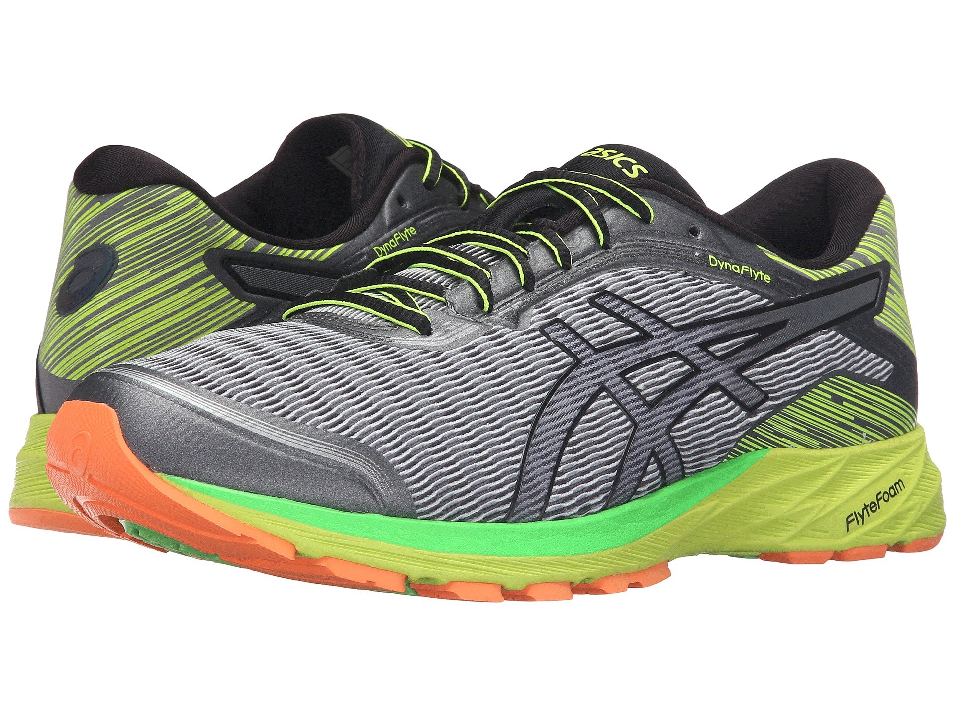 | Product Information SKU: #9018605The ASICS? Dynaflyte is built to endure even the toughest runs. Predecessor: None. Support Type: Neutral to underpronation. Cushioning: Lightweight, flexible support. Surface: Road. Differential: 8 mm.Lightweight, flexible fabric, textile, and synthetic upper materials. Seamless construction in the forefoot helps eliminate the likelihood of irritation.Lace-up closure. Independently placed eyelets help to evenly distribute lace tension for a better fit and feel. Plush tongue and collar. Soft fabric lining. Removable foam insole. I.G.S.? (Impact Guidance System) employs linked componentry to enhance the foot's natural stride from heel strike through toe-off. Lightweight FlyteFoam midsole. Heel/Toe: 20 mm/12 mm.ComforDry lasting provides underfoot cushioning, without sacrificing breathability. Imported. Product measurements were taken using size 11, width D - Medium. Please note that measurements may vary by size.Weight of footwear is based on a single item, not a pair.Measurements: Weight: 15 oz |
