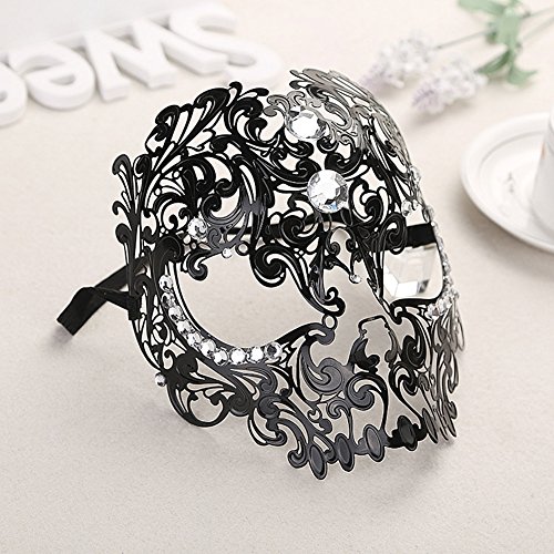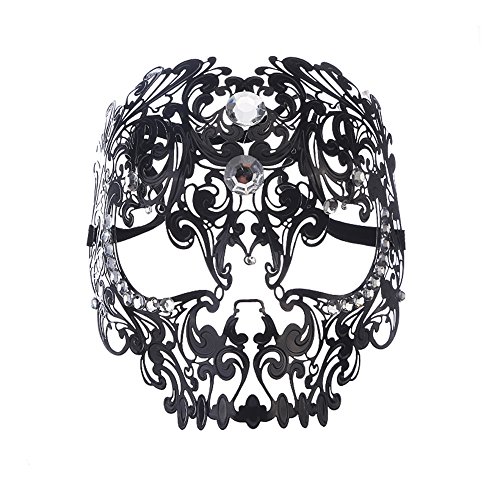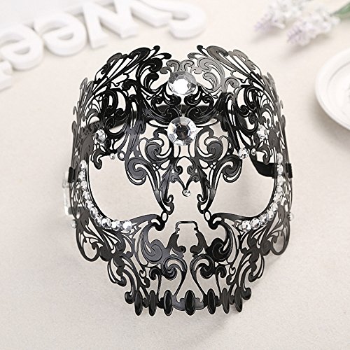 CharlyZhou's Shop Metal Material Delicate Gothic Evil Skull Lace Party Unisex Mens Mask Black