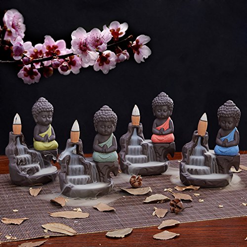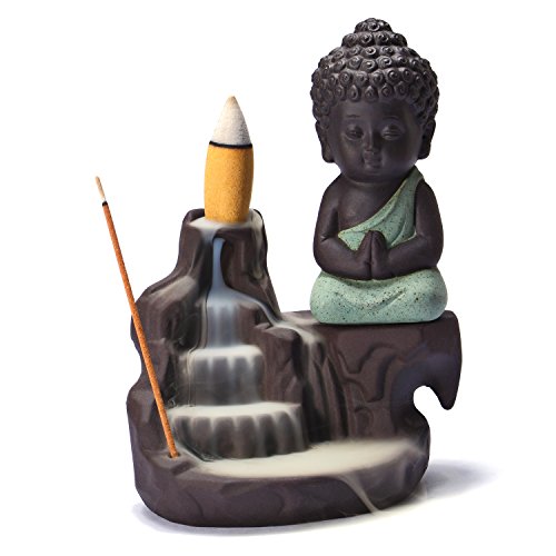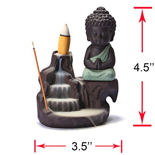 UOON Ceramic Buddha Incense Burner Holder Backflow, Cone and Stick Incense Burner Ash Catcher (GREEN)