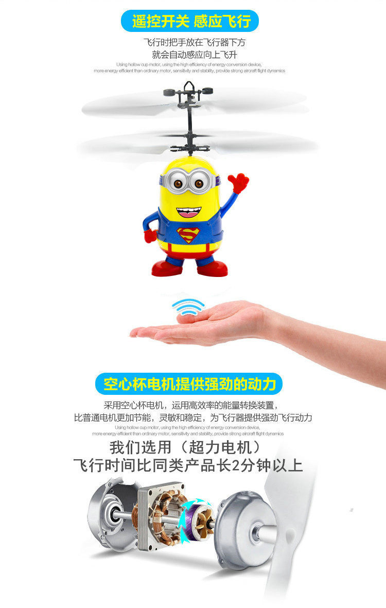 Minions Infrared Induction Drone Flying Flash Colorful Shining LED Lighting Helicopter Child Kid Toy Gesture-Sensing