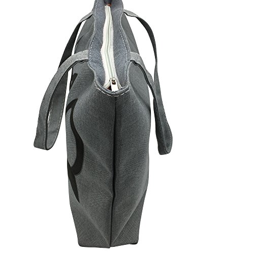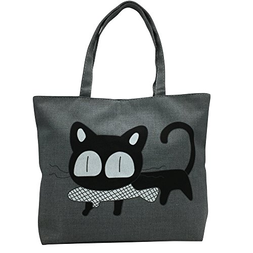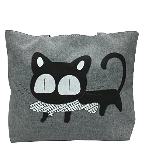 Mziart Women's Canvas Tote Bag Shopping Satchel Handbag Zipper Closure Shoulder Bags (Black Cartoon Cat)