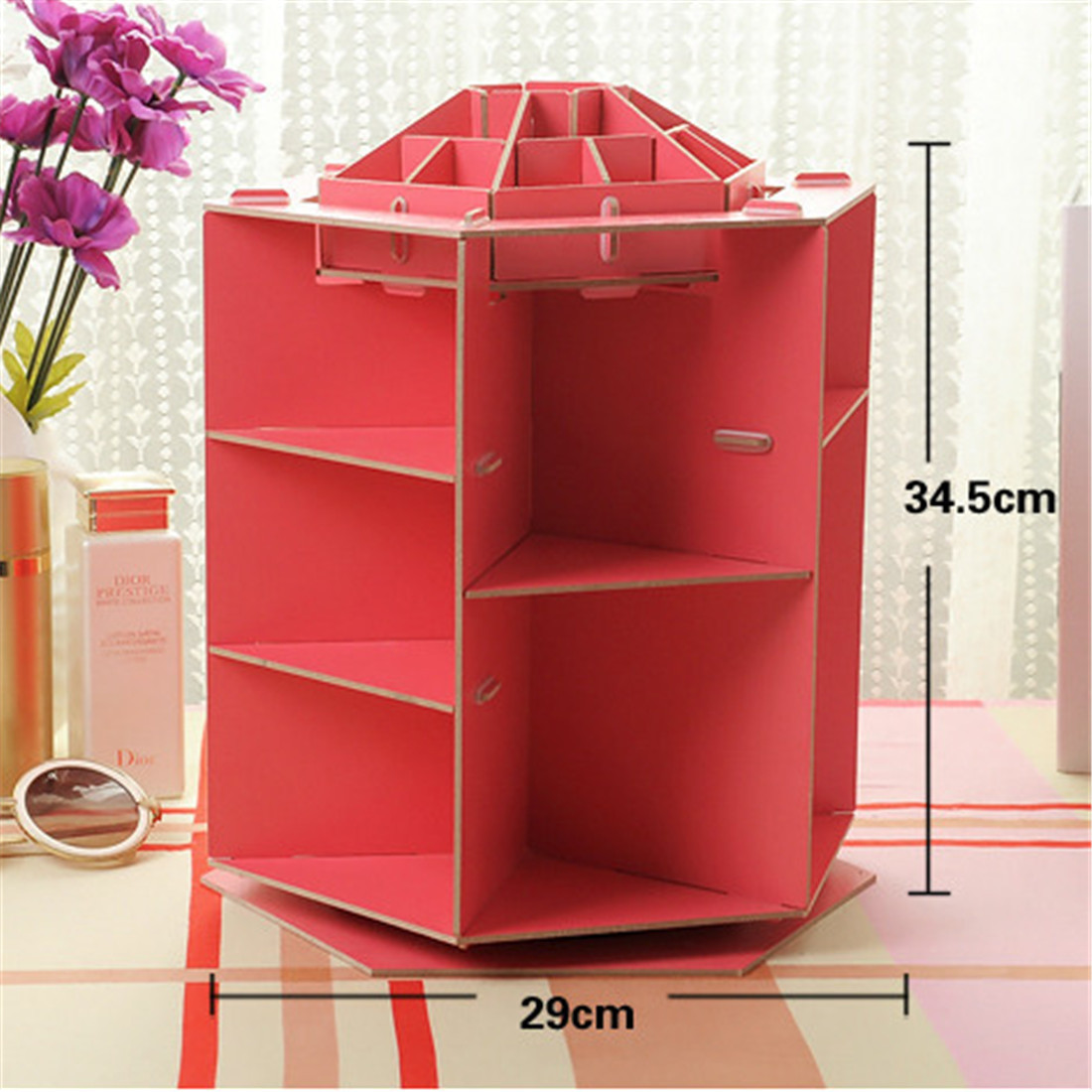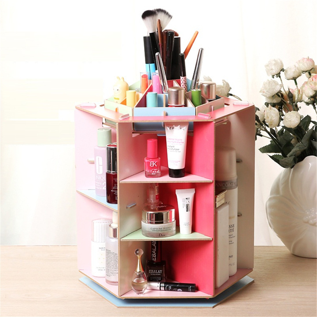 Big capacity. It has many grids, every grid can store many kinds of makeup. It can help you save space and say goodbye to mess.