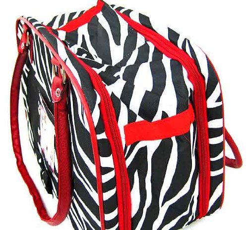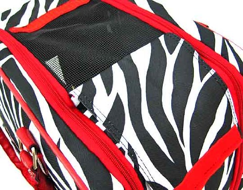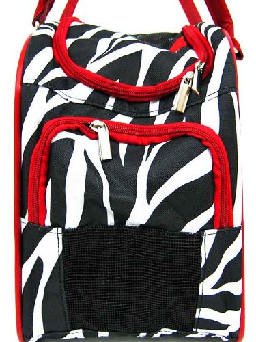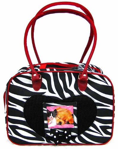 -. Title : Purse Style Nylon Zebra Pet Carrier with Red Trim for Dogs, Puppies, Cats, Kittens, and more