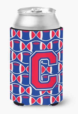 Caroline's Treasures CJ1076-CCC Letter C Football Harvard Crimson and Yale Blue Can or Bottle Hugger, Multicolor