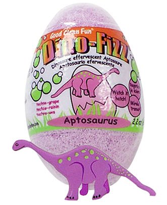- With a fruity fun scent of grape, this effervescent egg fills your child's tub with prehistoric fun! As the egg shaped fizzy dissolves, a baby Aptosaurus dinosaur 'hatches' and floats to the surface.