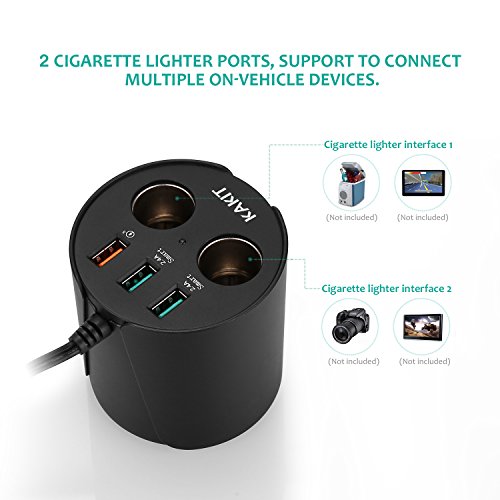 Cigarette lighter adapter- 2 Cigar Ports with DC 12V-10A Max/24V-5A Max, provide a total power of up to 120W, perfect for simultaneously use of multiple car appliances.