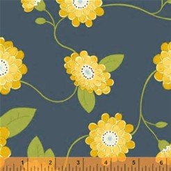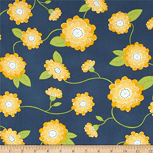 PRECUT 2 yards -Wallflowers-Vine flower in Navy Blue - Cotton Fabric - (Great for Quilting, Sewing, Craft Projects, Quilt) Pre-Cut 2 Yards X 44"