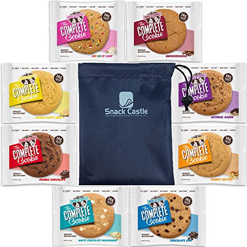 Lenny and Larrys The Complete Cookie - Vegan Protein Cookies (Pack of 16) 8 Flavors / 4-Ounce Cookies Variety Pack with a Snack Castle 9" x 8" Reusable...