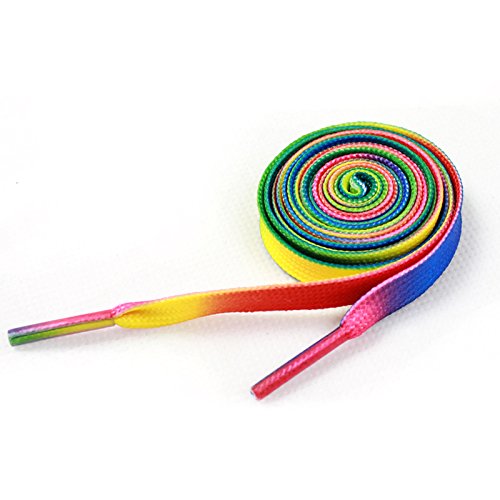 -. Brand : TopTie -. Department : unisex-adult -. Feature : Approximately 5/16" Wide (0.9cm) and 46" Long (120cm) / Made of durable nylon / Bright rainbow color / Great for parades, festivals, concerts / Price for ONE pair -. Model : LACJ-DE81104 -. ProductGroup : Shoes -. ProductTypeName : SHOE_ACCESSORY -. Title : TopTie Rainbow Color Flat Shoelaces 46 Inch Long, Price / Pair