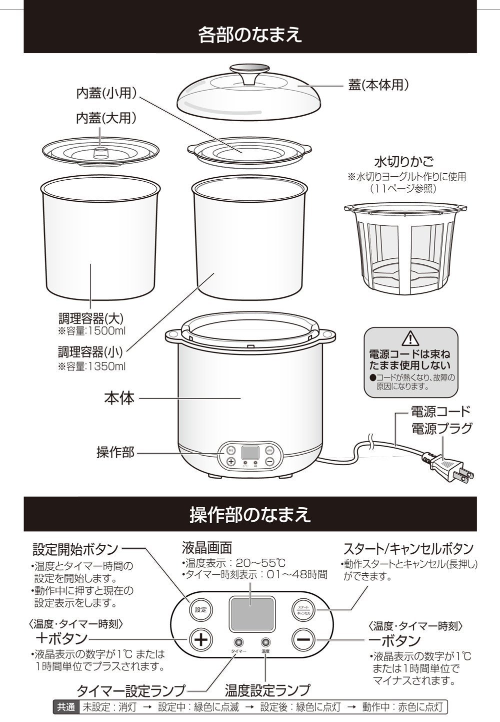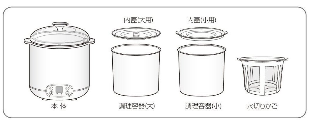 Since each cooking vessel is attached one by one for each large and small, it can be conveniently used separately from yoghurt, natto, etc.