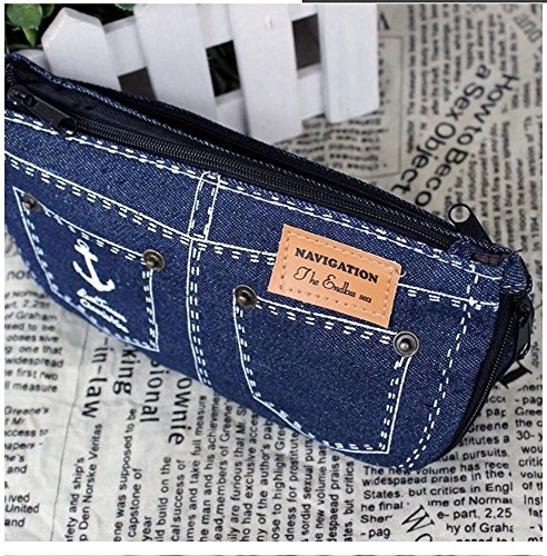 Studio : Anndeeson Publisher : Anndeeson Binding : Office Product Product Description Cool and new design multiduty and durable Cowboy jeans style make you be unique and outstanding The bag can be a pencil case or a makeup bag as well At the bottom of the zipper can be adjusted so that have a greater capacity Materal: Canvas Color: Dark blue Size:21x11cm(approx.)