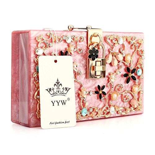 Size: 7.4"(L) * 2.6"(W) * 4.7"(H) Closure type: center folding frame with designer closure Occasions: wedding/prom/party/black tie/show/cocktail/night out Fit enough: cell phone/small wallet/mirror/lipstick/makeups/cash/credit card/car keys/ Package Included: