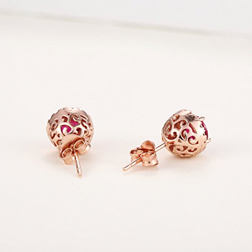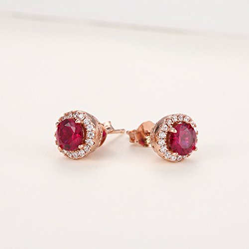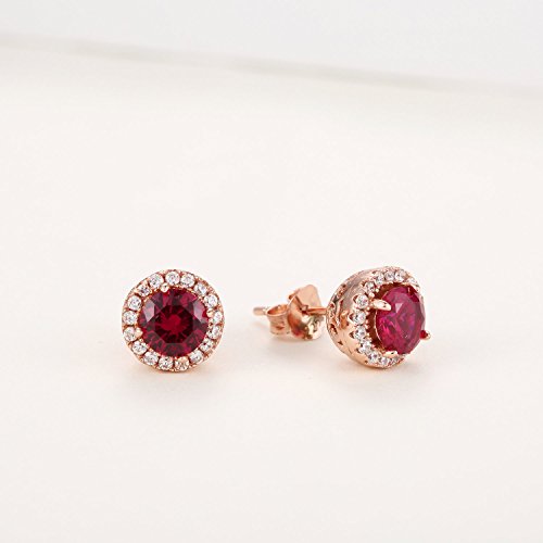 ♥Crafted in 925 sterling silver with 18k rose gold plated, each coordinating earring features a 6.0mm lab-created bright ruby wrapped in a dazzling border of sparkling lab-created white cubic zirconia