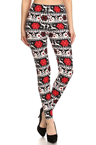 Leggings Depot Ultra Soft Popular EXTRA PLUS Best Printed Womens Fashion Leggings (Extra Plus, Red Christmas)