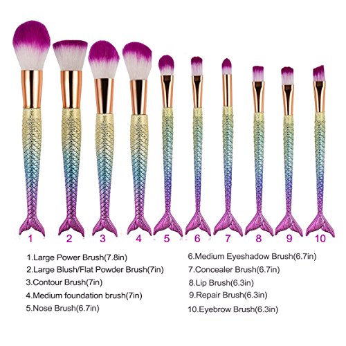 - - Popular Mermaid Shape:3D fish scale gradient handles Makeup Brush will give you an incredible touch feeling and stylish visual feel.Suitable for both professional or individual use.