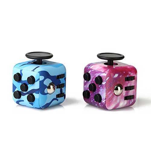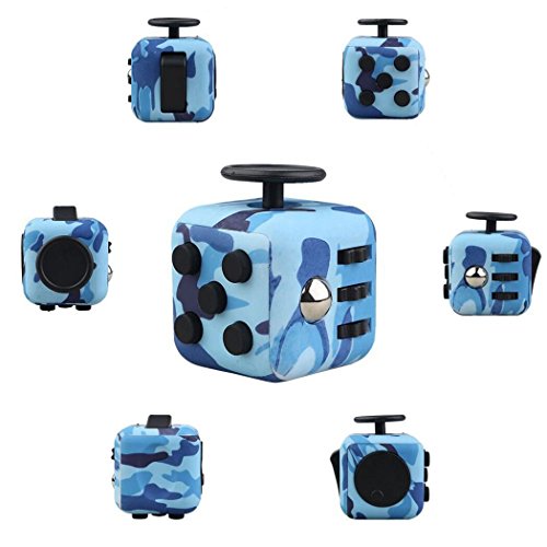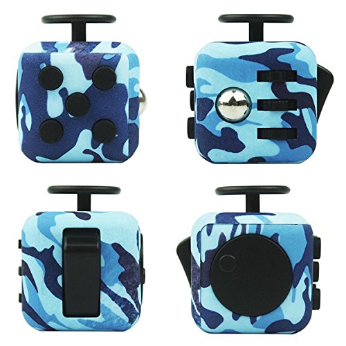 Six Side Hand Fidget Cube: These fidget cube anti anxiety stress have 5 push buttons ( 2 silent and 3 clickable ), a joystick, a lightswitch, worry stone-like surface, 3 spinning gears and a metal ball that clicks and rolls, and a spinning dial. PLUS the rubber covers that not only protects the cube and keeps it clean but also serves as a sensory tool.