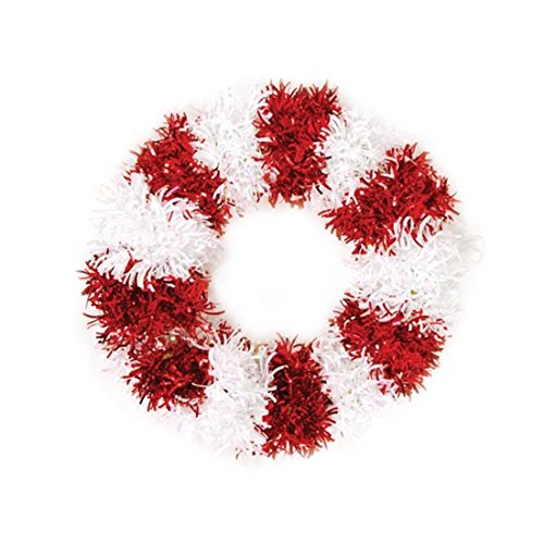 Red and White Candy Cane Striped Tinsel Christmas Wreath Decoration, 16 Inch