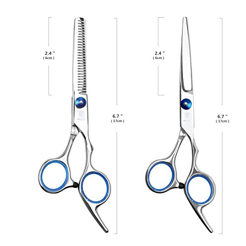What's in the box? 1 x Barber Salon Professional Hair Cutting Scissors(golden)? 1 x Texturing Thinning Scissors 1 x Comb 2 x stainless hairpins 1 x Black Case