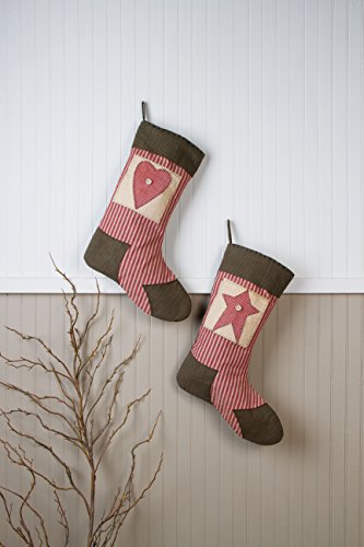 Americana Heart and Star Stitchery 18 x 13 Fabric Christmas Stocking Set of 2