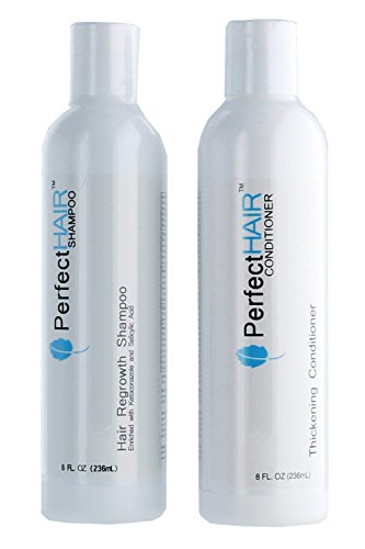 A combination of Perfect hair regrowth shampoo and perfect hair thickening conditioner. A powerful combination of highest quality grade ingredients, professionally formulated to work synergistically to eliminate the synthesis of Dht, maintain scalp vitality, revitalize dysfunctional follicles, and remove excess impurities on the scalp. The Professional Hair Regrowth Shampoo increases the penetration of minoxidil products, and prevents further damage of follicles by eliminating the formation of Dht on the surface while providing key nutrients for healthy and strong hair. Enriched with our unique blend of wild-harvested, cold pressed marula oil, organic Coconut Oil Extract and natural Argan oil, Perfect hair conditioner is scientifically formulated to give body and volume to limp and thinning hair. It gives a luxurious texture and appearance to hair and is designed to replenish moisture, strengthen the hair shaft and deliver essential nutrients especially when used with Perfect hair shampoo. Perfect hair conditioner is for all hair types and is especially formulated to maintain and preserve color brilliance. 100% Vegan. Not tested on animals, no animal byproducts. These statements have not been evaluated by the Food and Drug Administration. These products are not intended to diagnose, treat, cure, or prevent any disease.