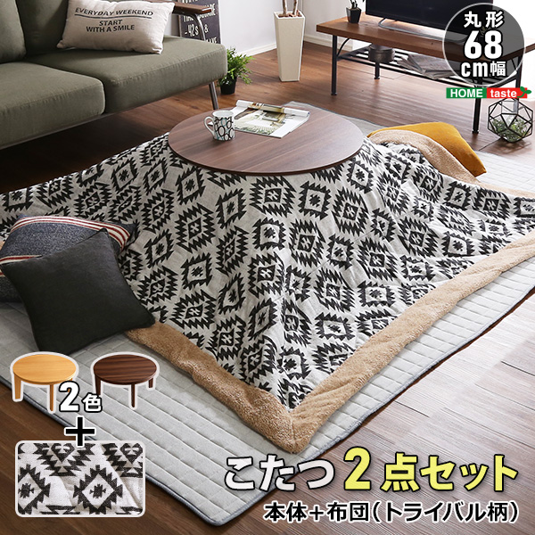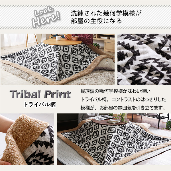 ●冬だけじゃもったいない、カジュアルテイストのおしゃれなこたつと、洗練された幾何学模様のトライバル柄薄掛け布団の2点セット!