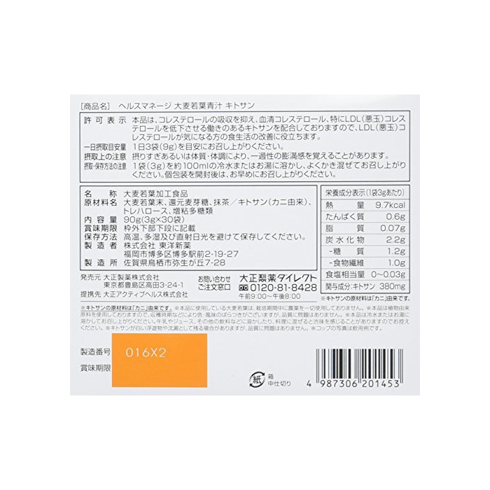 원본상품명: 大正製? ヘルスマネ?ジ 大?若葉?汁<キトサン> 特定保健用食品 30包
