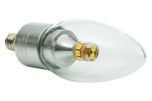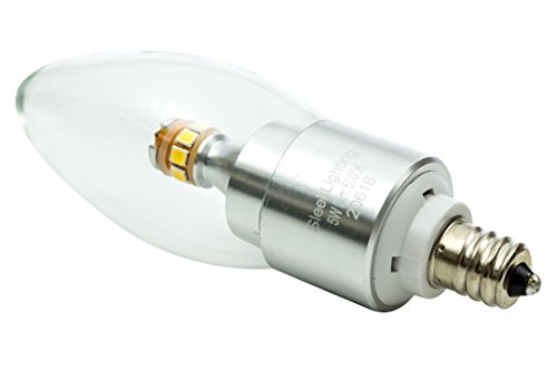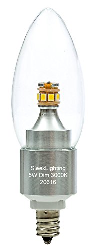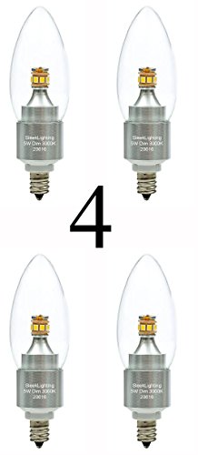 SleekLighting 5 Watt, Dimmable LED E12 Base Light Bulb (50w Incandescent Replacement), Omni Directional, Warm White 3000k, Chandelier Torpedo Shape, Clear Cover, Silver Base - 4pack