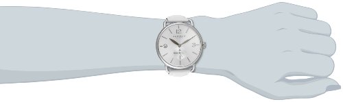 - Feature : Silver-tone, baton and Arabic numeral, hour markers on the sunray dial / 60 second sub dial at the 6 o'clock position / White, genuine leather, strap with a stainless steel case / Precise quartz movement / Water-resistant to 30 M (99 feet) / Silver-tone, baton and Arabic numeral, hour markers on the sunray dial / 60 second sub dial at the 6 o'clock position / White, genuine leather, strap with a stainless steel case / Precise quartz movement / Water resistant to 99 feet (30 M): withstands rain and splashes of water, but not showering or submersion