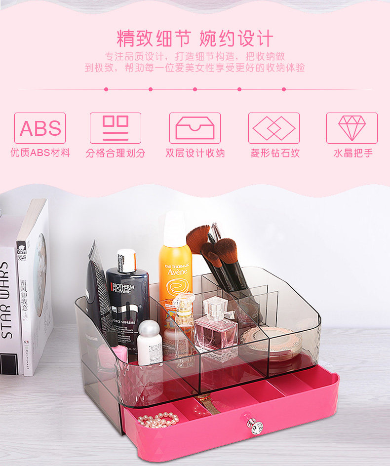 化妆品收纳盒带镜子梳妆台收纳盒家用塑料桌面抽屉式首饰整理盒