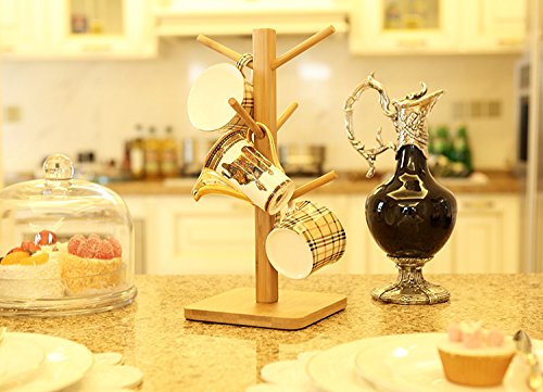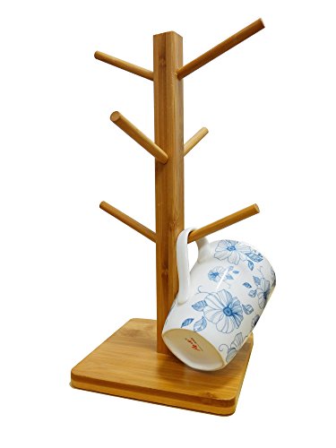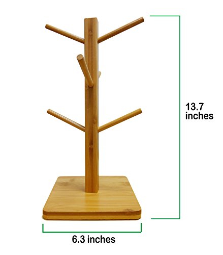 Bamboo Mug Rack with 6 Hooks for Large Mugs or Cups