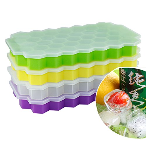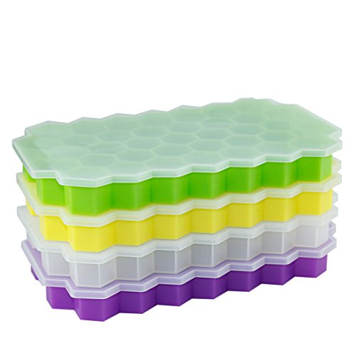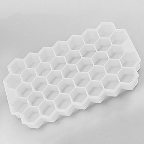 Haoun Silicone Hexagon Ice Cube Tray with Lid - Flexible Rubber,37 Ice Cubes Molds - Transparent