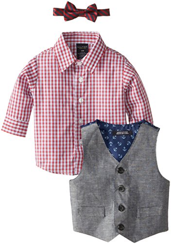 Nautica Baby-Boys Infant Linen Twill Vest Set, Red, 18 Months