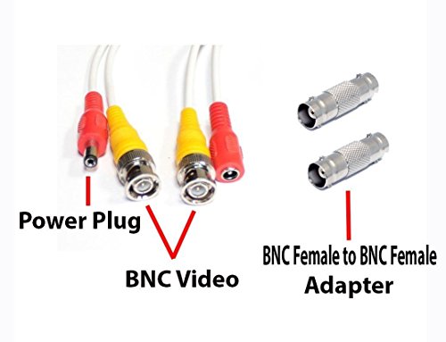 Video/Power cable has BNC connectors and includes 8 BNC Female to BNC Female adapters