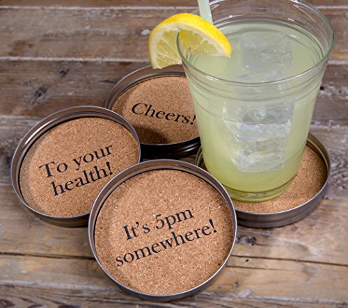 American Recreations Set of Four (4) Sentament Mason Cork Lid Coasters