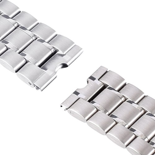 - Feature : This Solid links Stainless Steel is designed for Moto 360. There are small plastic humps inside the watch case. This band is made for it. It's a beautiful band and it fits the Moto 360 watch very well. / Adjustable Length (mm): 170. Three links each side can be removed. Six links in total. Remover included. This band can be adjusted to fit small wrist by removing up to 6 links. / Fashion clasp: fold-over clasp with hidden single push-button / Lug width is 22mm. Fit for LG G watch R also. Not fit for pebble steel. / This metal band will make your watch stand out even more as a stylish piece of jewelry and it's very comfortable to wear.