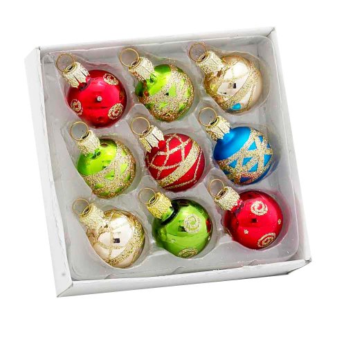 Kurt Adler Petite Treasures Multi Color Ball Christmas Ornament, Set of 9