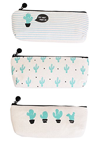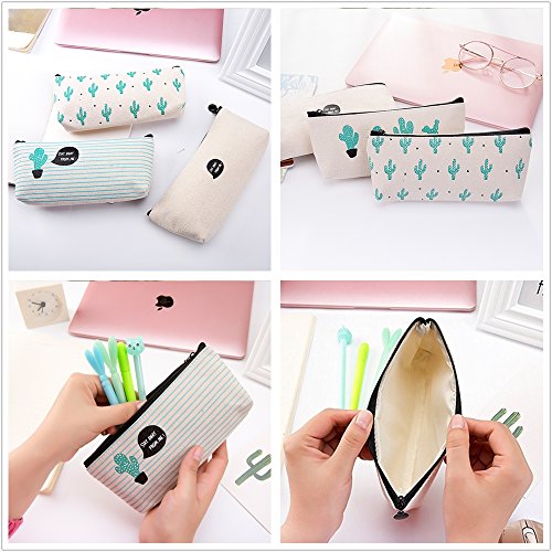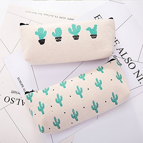 - The pencil bags are made of good canvas material, washable and durable. Printed with cute and attractive cactus pattern, in a fresh and natural theme. Inside lining protects the contents well. The zipper works smoothly to zip up and down.